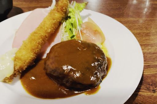 次にいただいたハンバーグは、まさに老舗の名にふさわしい逸品。肉汁が溢れ出すほどジューシーで、口の中でふんわりとほどける柔らかさが印象的でした。外は香ばしく焼かれていて、中はしっとりとジューシー。デミグラスソースは深いコクがあり、長年継ぎ足しながら作り続けてきたであろうその味は、食べる人を虜にするほどの完成度でした。ご飯がどんどん進み、気づけばあっという間に完食してしまうほどの美味しさでした。