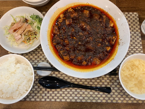 昨日、ランチ営業時間前訪れて、ついお隣入っちゃったので今日は改めてランチラストオーダー前に入店。外観も大正モダンレトロな雰囲気で小綺麗。 「激辛陳麻婆豆腐ランチ」注文。 先客は3・4人ばかりだけど、落ち着いた空気でホッとする。