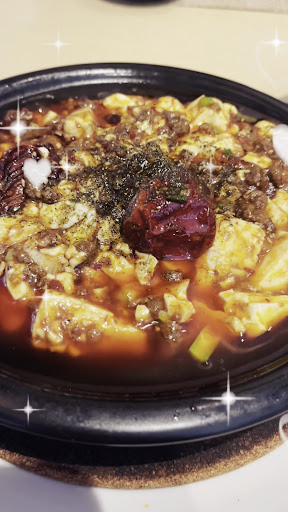 ◎四川麻婆豆腐/目の前で陶器鍋の蓋を開けてもらうとグツグツと煮立って、豆板醤と甜麺醤の香りがします! 辛さは後からピリッと来る感じでやや辛めでした! 味はめっちゃ美味しかったです‼️ 香りもとっても良かった! 挽肉と豆腐も旨味があって美味しかった(*゚▽゚)❤︎ 少し食べてから必然のオンザライス! これがめちゃ美味すぎてご飯が止まりません! 土鍋なので中々冷めないのも嬉しいです♪ 量はボリューミーで食べ応えのある麻婆豆腐でした! めっちゃ美味しかった〜☆:.。. o(≧▽≦)o .。.:☆