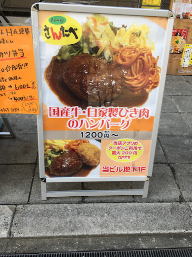 オモテの看板に 『有名でない方のハンバーグ屋さん』