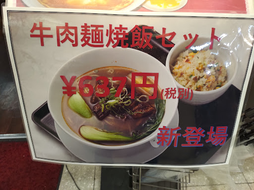 Read moreたまたまこちらに立ち寄った。 「牛肉麺焼飯セット」を注文したのが、イマイチであった。 率直にいうと、料理のバランスが悪い。肉の味付けが非常に辛いのに対して、スープの味が薄く、野菜は味がしない。おまけに芯が残っている。 焼飯はニンジンが妙に硬い。 素人の私が、下ごしらえの甘さを感じたのだ。 味は平均以下。 値段はセットで700円だった。
