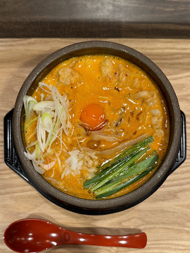 Read moreラーメン激戦区に新たに現れたチャレンジャー!石焼き鍋を使ったラーメン。辛い赤味噌、辛くない白味噌の二種類があるが、辛いものスキーな私は当然赤味噌、海鮮やホルモンが苦手なので赤味噌チャーシューメンの3辛。看板によれば最大は1000みたいだが、辛いものスキーな私は小手調べと3辛を選ぶ。店の人の会話を漏れ聞くと、やはり3辛がトッピングとして人気らしい。 味は石鍋で暖められた保温性抜群のスープが程よく辛く、麺に絡み付く。そして落とされている卵をかき混ぜると、辛さは和らぎ、しかし旨味が増す。チャーシューはステーキ肉並みに分厚いのによく煮込まれ、箸で摘まんで口に入れるとかみる前に解れる感じ。 あえて言おう。旨いと。 ただ、原材料の高騰なのか、単品で平均1500円ほどは飛ぶのを覚悟という価格設定。 旨いものは高くても売れやすいが、これは激戦区においては吉と出るか? 是非、勝ち残って欲しい店である。