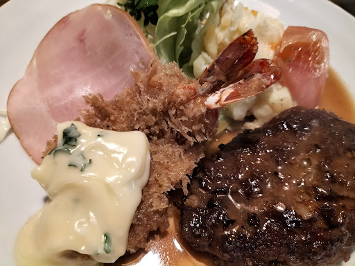 梅川事件で有名な旧三菱銀行の向かいにある。あれだけの事件があって名前以外は基本そのままで現存している銀行も凄いが、この店はそれより前から変わらず営業されている。私も幼少期に親に連れられて訪れた記憶が微かにある。何から何まで狙った感じでなくナチュラルに昭和。 一番お得なメニューであろう¥660のランチはハンバーグ、エビフライ、ハム、サラダ、ライスのセットで食材、見た目、値段、全て昔ながらである。いい意味で普通に美味いという他ない。 禁煙、分煙の類は一切なされていないのも昭和のまま。極端な嫌煙家であれば行かない方が無難だろう。 BGMの昭和歌謡曲が全曲分かった私は紛れもないおっさんだが、店主ご夫婦は私の親世代、店名はその世代にはおなじみのサンレモ音楽祭...