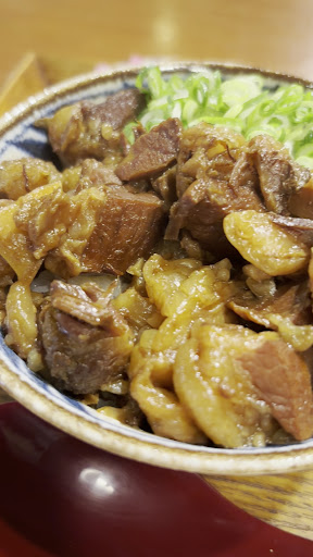(牛めし) 当初イメージしていたのは、「吉野家の牛丼」だったのですが(笑) 表面が見えないほどにてんこ盛りされた牛肉。 そこに、"ご自由に" と表記された 卵と紅生姜をトッピングしました。 そもそもの色が若干濃いので、固く濃厚な味わいかも?と思いながらいただいてみると、、、これが柔らかくてしっとり♪ 味つけそのものも、想像していた甘辛さはなくて、実に上品。 肉めしぃぃぃぃ~って感じで、元気がわいてくる感じです!