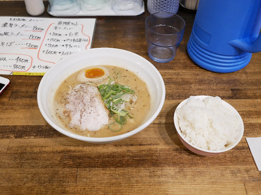 注文時に麺をおすすめでお願いした。中太ちぢれ麺もストレート細麺もどっちも個人的に好みだし、ここはお店として推しているものを食べるべきかなと。 ホールの方が作り手にどっちか聞いてて「共有してないんかい」って心でツッコミ、作り手がえーっと(ガチで声出てた)って2〜3秒考えてて「決めてないんかい」って再度ツッコミ。 結局ちぢれになったけどなんか...うん。 替え玉は違う麺でもいいみたいなのでストレートに。こっちの方が美味しい。 スープに関しては麺との相性はいいけどスープだけで飲むと塩辛さを強く感じる。 ただ、チャーシューは厚切りとろっとろで美味すぎる。1枚増しする価値あり。これの丼とかあれば頼む。
