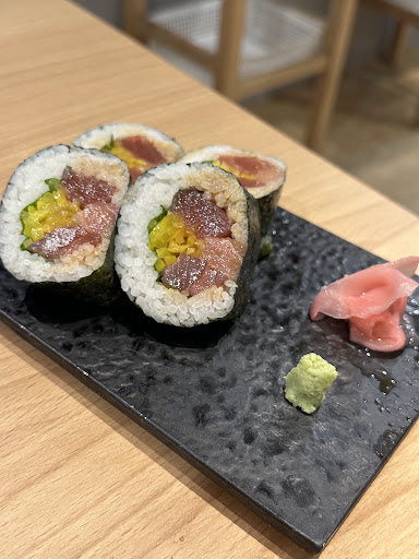 ⚫︎名物トロタク巻き こちらの名物料理の一つ。トロ、赤身、沢庵が豪快に入った巻き寿司。しっかりとトロも入っているので、赤身とので味わいの違いを一緒に楽しむことができました。また沢庵との食感のコントラストも楽しく美味しい巻き寿司でした😆