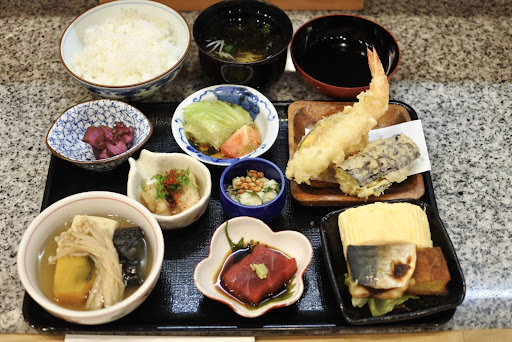 ◆お弁当 価格 1,000円 色んな食材が少しずつたくさんあってめっちゃ美味しそう! 鮪のお造り、天ぷら3種、焼魚(鯖)、だし巻き卵、炊き合わせ、生麩の照り焼き、南蛮漬け、にゅうめんなどなど。 味噌汁かと思ったらソーメンが入っていて、これめっちゃ美味しい! 鮪のお造り美味い。 焼魚も西京焼きみたいで醤油つけなくても美味い^ - ^ 生麩の照り焼きは激ウマ! 炊き合わせもその他もぜんぶ美味しい〜。 少しずつの料理ですが、どれも丁寧に作られてます。 お代わりして大満足!