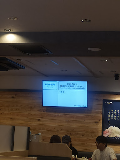 After ordering, your order numberwill be shown on the screen. You can pick up your order at the counter and you are supposed to return your plate and tray back to the counter after eating.