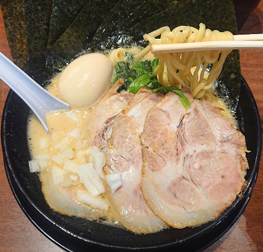 Read more資本店かと勝手に思い今までスルーしてました… 口コミで個人店と知り訪店しました。 看板&店内POP&完まくカードは資本店っぽかったです。 注文はMAX太麺お好み全て普通にしました。 スープの表面は皆さんが書かれているように少しぬるく感じました。(←今は改善されてます) 昼時のライス無料や卓上の青ガッパ&玉ねぎは基本を押さえていて好印象。 トータル的に見て個人的にはかなり優良店と思うのでリピートしたいと思います。