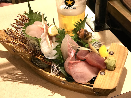 この大満足の舟盛りだけで生ビール3杯はイケちゃうねぇ