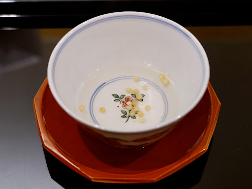 ——食事内容—— ▶桜湯 桜の香りを白湯につけて、雛あられを散らして。 3月の雛祭りに合わせてくれるの嬉しい♡ ▶白魚と桜の胡麻豆腐 練り立て胡麻豆腐に白魚を炊いたものと、 桜の花びらの塩漬け・桜の葉の湯通しを乗せて。 胡麻豆腐のねっとりした舌触りに白魚の苦味が広がる♡ 醤油などの調味料は使わずに桜の葉で香り付けしており 春を感じさせてくれるスタートが素晴らしい!! ▶煮物椀 クロメバル 卵豆腐 独活と茗荷・木の芽を添えて。 能勢 湧き水・北海道 真昆布・枕崎 鰹節 のお出汁で、 まろやかでコクのある旨みが広がって美味しい( ´꒳