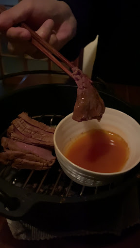 ✔︎︎︎︎ 黒毛和牛モモ肉 たっぷりと入ったお肉を燻製溶きたまご、燻製醤油、燻製わさび、燻製塩、燻製味噌でいただけます! 薬味が豊富すぎる✨️