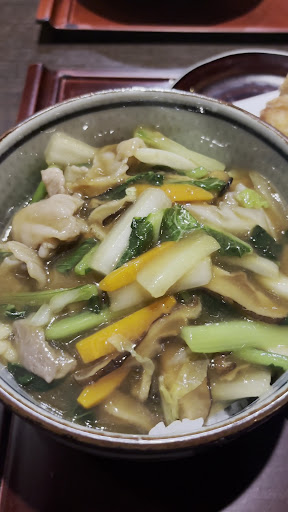あんかけは野菜はシャキシャキしてますがぼんやりした味、野菜の味も香りも微妙 ですが、あんかけのおかげで流し込めた感じです。