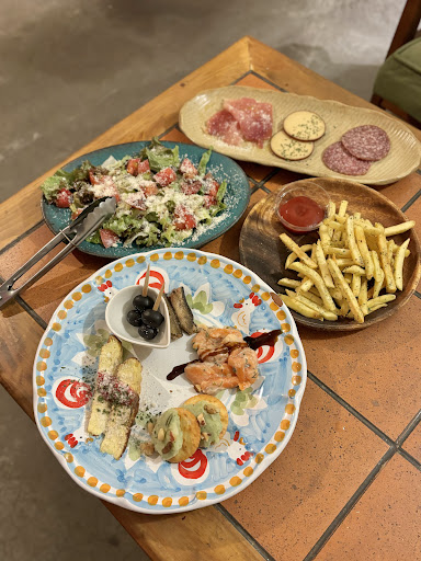 Originally, I wanted to go to the tempura restaurant right next to the hotel on this trip. It must be a popular restaurant because I tried to make a reservation a month ago but couldn't get one. So, this is the restaurant I found instead. After wandering around Mount Koya all day, I was extremely hungry by the time my 7 PM reservation rolled around. It took less than five minutes from the hotel, but even though Google Maps directed me to the location, I couldn't find the entrance. Only after seeing a photo of the entrance posted by someone else on Google did I find the entrance leading to the second floor. This restaurant is young. The staff are young, and the customers who come are young. Our group of four raised the average age, but we felt rejuvenated by the atmosphere. The salad was simple but delicious, with fresh vegetables, buffalo mozzarella, and a tangy dressing. The first dish served was wood-fired pork, which paired perfectly with the 4,000 yen Italian wine. The spaghetti was an art form—thin, chewy, and flat noodles blended with the sauce for a fantastic taste. The pizza was also outstanding. The crust was light and the cheese was rich. It's a truly...