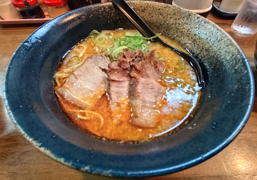 ・店内、通院しながらの大将、と奥さんのお2人。 体調も万全でないから仕方ないけど、やっぱり味は繊細じゃない。 味噌チャーシュー麺、大盛は麺2玉。 チャーシューは確かにトロトロで美味しく、厚切りが10枚くらい入って食べ応えあるが、味噌スープにパンチが無いので、大蒜/七味/辣油足したくらいで丁度良しかな?。 うどん文化の大阪も、徐々に拉麺専門店が増えてるから、各店、味の勝負が激化、進化中。サブメニューもチャーハン、唐揚げ、とかは当然。