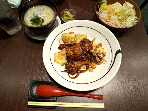 ちょっとしたプリフィクス 笑 豚バラ肉とキャベツの辛みそ炒め、中華おじやでお願いしました。