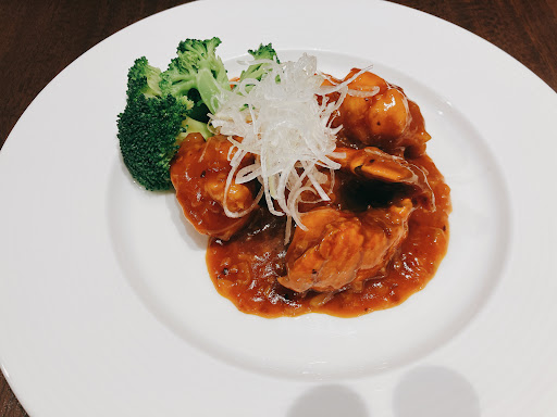 ◆フカヒレのステーキ 姿煮かステーキかを選べたので食べた事のなかったステーキを選択。 パリパリの外側と中のフカヒレ特有のムニュムニュ感の食感のグラデーションが秀逸。 ステーキにして正解だった! ステーキソースも薬味を多く使った独特の中華風ソースでフカヒレにバッチリ合う。 これは文句なしに美味かった。