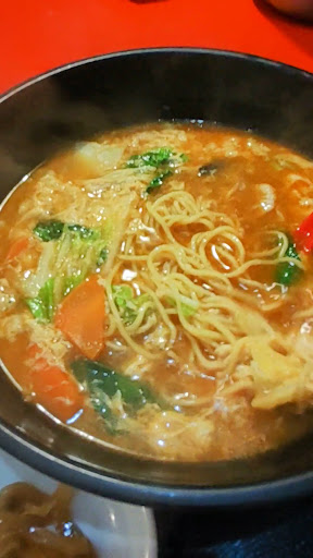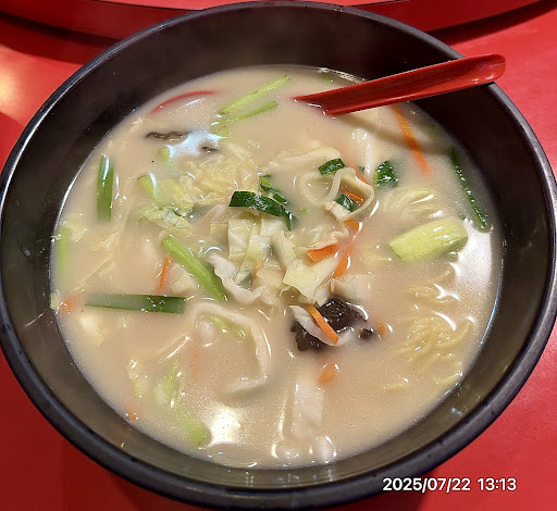 ものの1分ほどで運ばれてきたラーメンセット。 早っ。 「酸辣湯麺」麺硬めで注文したけど、具に火が入り過ぎて少しクタった模様。若干、パンチ不足なので、酢&辣油でパンチアップ。美味しい。 「唐揚げ」塩胡椒なくて、円卓中央からの和辛子でからし醤油で食べる。まぁまぁ。 「ご飯」炊き立てながら、やや柔らか気味。 基本美味しいんだけどね、お昼時は回転率勝負なので、半分以上仕込み済の様子。