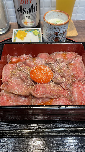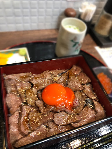Read more特選黒毛和牛レアステーキ重と特選黒毛和牛炙りステーキ重を注文しました。 ここのレアステーキ重が最近食べた中で1番肉質がよく、おいしかったです。味変の調味料が色々あったのもよかったです。 個人的にはほんの少し炙って貰い、ご飯大盛り、たまごトッピングの味付けはたれで、味変の柚子胡椒を少しかけて頂くのが1番おいしかったです。 ごちそうさまでした。