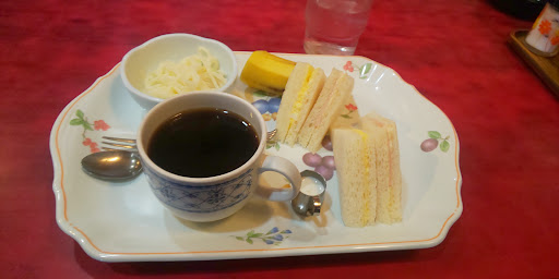 IKEAの近くらしく帰り道と違うけど気になり行っちゃいます。 おー レトロ おーお年寄りで満席 おーやっす(;゜0゜) 週末はなのか? 1種類のモーニングらしい。 ホット注文 メニュー見ると¥300 2人で笑ってしまった。 主人気に入ってしまった笑笑 ゆで卵 ポテサラ 果物 ハーフトースト あっつあつのコーヒー 熱すぎて飲めない笑笑 パン ハーフやけど6枚切り 足りんやろ? 笑 でもなんだろいい感じ(o^^o) 落ち着く感がいい 大正区だけに大正人の集まりか? とボヤく主人 愛されてる喫茶店や思います。^...