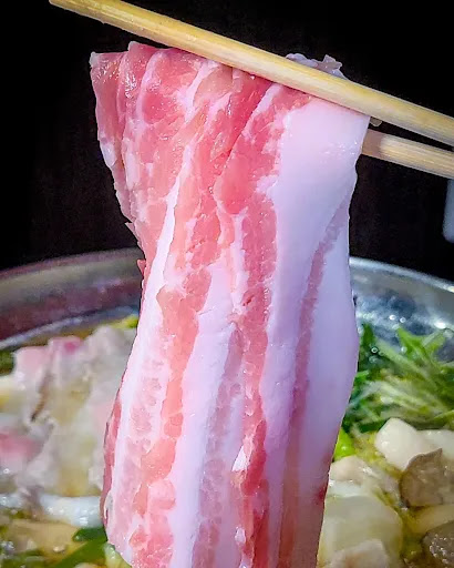 しゃぶしゃぶの霧島黒豚は、 脂が程よくのっていてお肉の甘み が感じられる豚肉でした✨