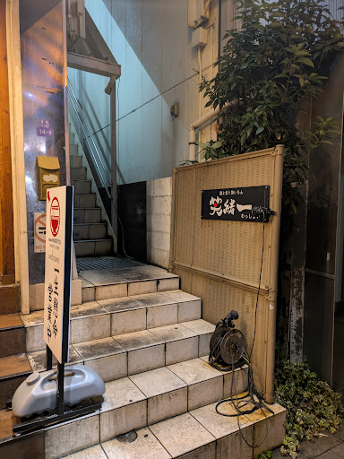 お店の場所は福島駅から北に歩いて8分ほど。 一階にあると思ってたので、店前に到着するも場所がすぐに分からず。 よく見るとお店は2階と書いてある立て看板を発見。 非常階段のような、少し怪しげな階段を登ってすぐ左に入り口の扉がありました。