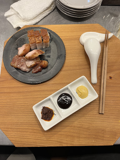 ⭐️国産ブランド豚の叉焼(1700円) 屋号にも入ってる『焼味(シュウメイ)』は広東料理で、下味をつけた肉類の炙り焼き。 今回は九州の豚肩ロースをつかったチャーシュー(叉焼)なのですが、焼いてから水につけたりを繰り返すことで、パリッとした焼き加減に。 とにかく肉肉しくて、日本では中々食べれない逸品。 是非ともこちらの『巣王』さんで食べていただきたいですね。 グッド!グッド!グッド!