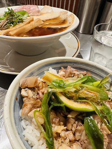 This is my first time here. This shop is located exactly halfway between Umeda Station, Kitashinchi Station, and Minamimorimachi Station. There are about 10 counter seats, and there are also table seats in the back. The impression of the interior is that it is very clean. The counter tables are made of metal and look cool, and the interior is well organized. I ordered ONE DREAM and Makanai Buta-don. The food was served about 5 minutes after ordering. ONE DREAM is the most popular ramen, topped with various types of roast pork on the signature soy sauce ramen. The roast pork is not a typical char siu pork, but a variety of Western-style roast pork. The bamboo shoots are thick and have a rich flavor. It is topped with a slightly larger amount of vegetables such as green onions and radishes. The noodles are thick and round, with a chewy texture. The soy sauce-based soup is light and sweet, but it mixes well with the noodles. The Makanai Buta-don is a modest size, and the volume is just right to eat with the ramen. Both the atmosphere of the restaurant and the taste of the noodles make you feel the arrival of a new era...