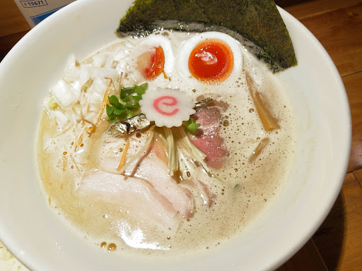 Read more4度目、令和3年4月26日 以前ここへ連れて来た息子が凄く気に入って数日前に単独で来たら、店主が不在で若い方が切り盛りされていてなんと味が違った、美味しく無かったと聞かされました。武庫之荘に新店オープンされたようですので店主はそちらへ行ったのでしょうか? お気に入りのお店なだけに気になって直ぐに行ってきました。 やっぱり店主さんは居らず若い方2~3名で切り盛りされてました。 濃醇鶏煮干しそば以外食べた事が無いので次は違うラーメンと決めていたのですが味が変わったか確かめたかったので今回も濃醇鶏煮干しそばを注文 私は特に味自体が変わったとは感じませんでしたが湯切りが甘いのか?麺が水っぽくスープに絡まずちょっと頼りない感じがしました。 あと、画像のように盛り付けがちょっと雑になったかな?手を着ける前に撮影しましたが丼のふちに玉ねぎが着いてます😅 店主さんはあんまり愛想の良い方では無かったですが若い方達は元気も有り愛想も良かったです。 好きな味のお店なのでこの程度では行かなくはなりません😃 三度目、令和2年12月15日 近くに用が有ったのでわざわざ行った訳では無かったが・・・😠 Googleマップでナビセットして行きました。 Googleマップでは「営業中」になってたのに現地に着くとシャッターが閉まって何やら張り紙が有ったが読んだところで店が開く訳でも無いのでそのまま別のラーメン屋さん目指して行きました。普段気軽に行けるような距離に有るお店じゃ無いし、ここのラーメンは凄く好きなのでがっかりしました。