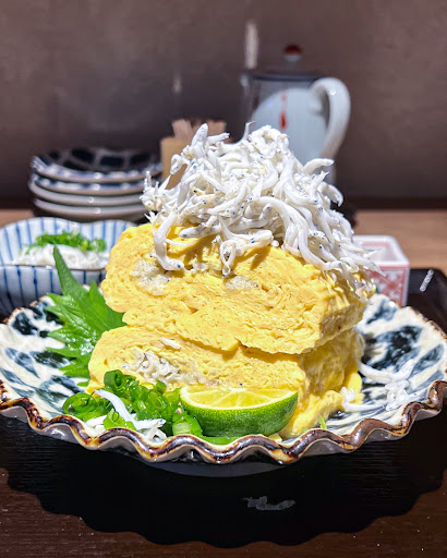 大きな出汁巻きの中にもギッシリとシラスが入っていて お出汁とシラスに溺れるほどの食べ応え!