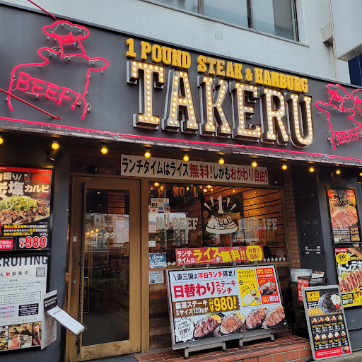 Read more初めてランチで伺いました🍴 駐車場が無いのですが、お店の向かいにコインパーキングがあります🚗 2000円以上のお食事で割引があるらしいです。 入店~退店までのスタッフさんの接客風景はすごく爽やかでハキハキしており、他のお客さんに対する接客でも見ていて良い気持ちになりました😆 ランチは日替わりで私はミスジステーキセット•友人が看板メニューのタケルステーキセットをオススメのミディアムレアで注文🥩 1切れずつ交換しましたが、タケルは弾力あるけど噛めば噛むほど味が出てくるタイプ、ミスジは柔らかくて凄く食べやすかったです✨ 提供時のお肉の味付けは塩コショウのみ🧂 テーブルの上に一通りのスパイスやタレやドレッシング等がズラリと並んでいて、スタッフさんが玉ねぎベースのタレも持ってきてくれます🧅 自分好みの味にカスタマイズ出来ますが、「初めてだから分からない」「種類が多すぎてどうしたら…」と言う方は壁に各調味料の説明と人気な組み合わせランキングが書かれているので参考にしてください😁 私のおすすめは組み合わせランキング1位の味付けでした✨ ランチメニューはライスのおかわりし放題なので凄く良いです🍚 お店オリジナル調味料の“タケルスパイス” “にんにく旨塩”...