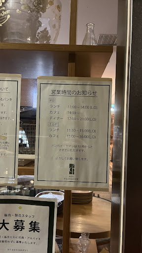 ■ 営業時間 ▼レストラン [月~金]ランチ11:30-14:30、カフェ、ディナー14:30-22:00(L.O.21:00) [土日祝] ランチ11:30-15:00 、カフェ15:00-19:00 ▼パンの販売 平日11:00-20:00