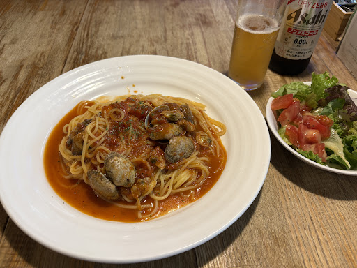 パスタの麺はどこかのスーパーで買ってきたんじゃないかと思うくらい パサパサの硬い麺でした。 イメージとしてはコンビニのお弁当に入ってるパスタの感じです。