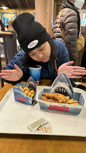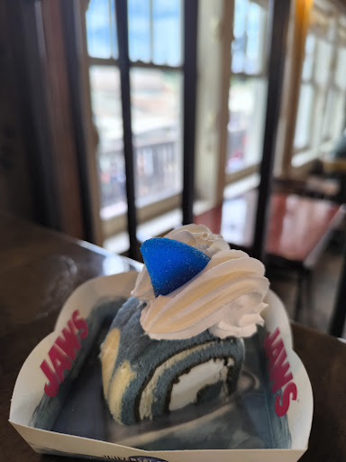 Read moreThe shark meat sandwiches are tasty. It has slight flavour of curry hint, not spicy. The cake is refreshing and tasted like gummy. Surprisingly the blueberry gummy flavour goes well as a cake. Decent meal considering in a theme park. The only issue is that it is very difficult to find empty table, especially a lot of Japanese school girls hoarding to those tables that are isolated, to do their little...