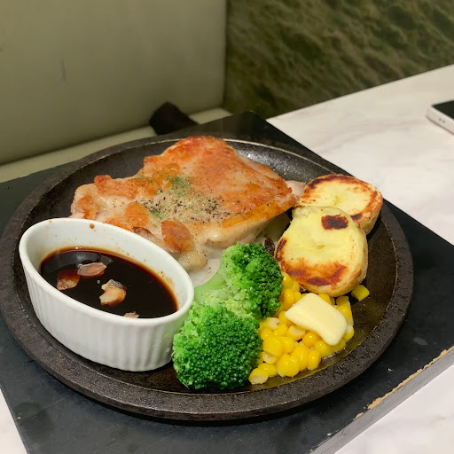 We ordered the creamy chicken gratin pasta and grilled chicken steak—they were both flavorful, satisfying, and nicely portioned.
