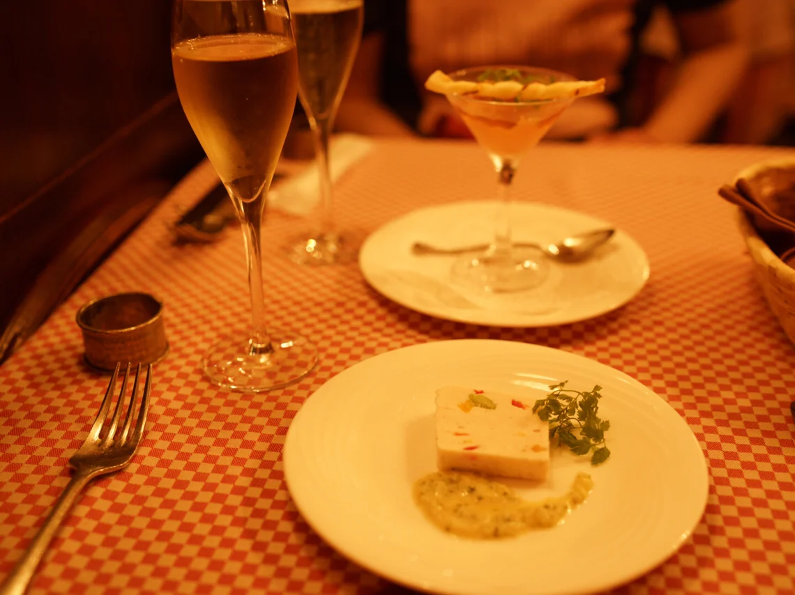 This was a wonderfully simple but elegant experience. I ate lunch with 3 friends. 2 of them ordered the quiche/salad appetizer and raved about both the aroma and flavor of the quiche. The salad was fresh with very well picked, sweet cherry tomatoes. My vegan friend, who had called ahead, received an altered salad with more greens, same sweet tomatoes, and some lovely pear-like fruit. I ordered the chicken vegetable terrine and an amazing dill flavor came through a lemony base. One friend and I ordered the sea bass that was nicely grilled with a white cream sauce that didn't overpower the fish. Another ordered the chicken that had a slightly spicy red wine reduction, not overly buttery but enough thickness to coat the chicken well. Vegan friend received a meatless cassoulet that had a sauce that almost smelled like the best bolognese. Vegan friend and I also shared a half carafe of the house white wine that paired well with both the fish and the cassoulet. For dessert, my quiche friends had the Mont Blanc, which I tasted: lovely! I had the creme caramel with a small scoop of ice cream, which hit all the right notes, just the perfect level of sweet, not treacly. Vegan friend received a bowl of fruit: grapefruit, kiwi, and a soft pear with edible flowers in a peach reduction. He raved about the quality of the produce. It was clear the chef/staff put a lot of thought into both the sourcing and preparation of the products. 2 of us had the coffee, among the best we've had in Osaka, while the other 2 had the tea, which was a ceylon base with hints of lavender and other floral notes. The meal was very French: the staff took their time, so our meal stretched out for 2 hours. Impeccable, attentive, but not overly interruptive service. It isn't the best French meal I've eaten, but it is among the most fun I've experienced.