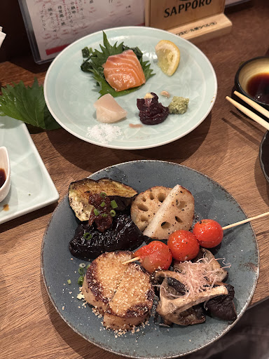 Read more3.5 stars-Small, friendly spot near our hotel that served a selection of mostly delicious little izakaya bites. Some on skewers and some plated. English menu and easy conversation with staff about available items. Ordered multiple different meats and veggies as our meal. Seared scallops, grilled shrimp, beef skewers, grilled cherry tomatoes, zucchini, and Shitake mushrooms made up our little feast tonight. The Beef was almost too rare for us, the shrimp were a bit overcooked, scallops seared perfectly, zucchini had a sweet char and was delicious, tomatoes perfect little pockets of sweet juicy goodness, and the mushrooms just too dry. I have no doubt that more visits with different choices would produce even better results. It’s clear they know what they are doing here and recommend a visit if...