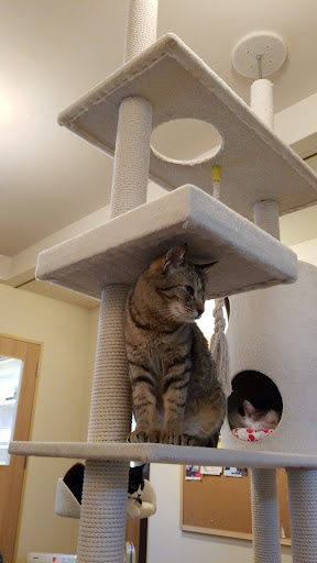 Read more上着があるとモテモテになれます(上着が) 猫ちゃんの総数が多く、スタッフさんの説明によれば2階の方が若めの子が多く、1階は落ち着いた年齢の子が多いようです。 私は今回初めてなので2階にお邪魔しました。