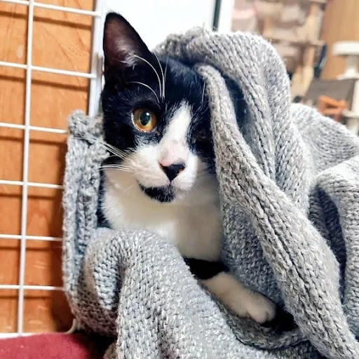 家に猫がいるので匂いを気にして東京で保護猫カフェデビューしましたが、大阪で調べているとこちらの保護猫カフェはいろんな猫ちゃんの保護に力を入れており、乳飲み子から育てることも多い(西成の捨て猫三兄弟など)と知り、それがどれだけ大変なことなのか知っているので来店が支援に繋がればと思いうちの猫にはダメだった猫缶パウチを手土産(裏方への寄付)にして来店しました。 のんびり過ごしている猫たち、2階は若い子が多いだけあっておもちゃや服に興味津々。 上着の中にもぐって中から外からじゃれたり、落ち着ききって上着に埋もれて寝てしまったり、家にいるような感覚で猫まみれ時間を過ごせます。