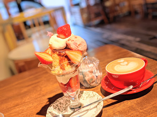 さつまいもプリンパフェは今日は苺がメインになっていますが大丈夫ですかと、注文時に丁寧に説明してくれる。普段はキャラメルナッツらしい。なんて日に来てしまったんだ、最高じゃないか。 パフェには春だからか桜の塩漬けが乗っていてちょっと可愛い。 クチコミを見て気になっていたプリンは芋感の強いずっしりタイプで、カレー完食後のお腹に別腹とは言わせてくれなかった。今度行く時はどちらかにしよう。きっとまた両方食べたくなるだろうな。
