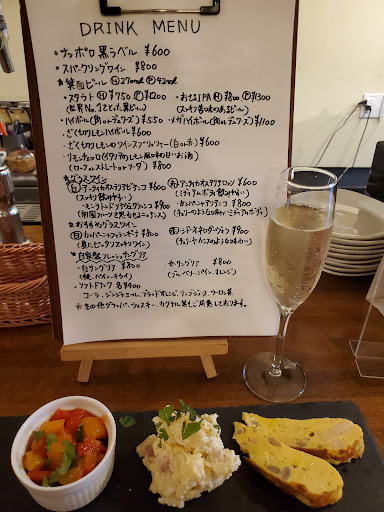で、そういえば、 前菜は白が合いますよということで白でスタート(`・ω・´) 箕面ビールとかもあって、ビールもこだわっているご様子。 ビール好きにも間違いないお店なんだけど、 まあ僕はやっぱりワインなので(´・ω・`)ネ