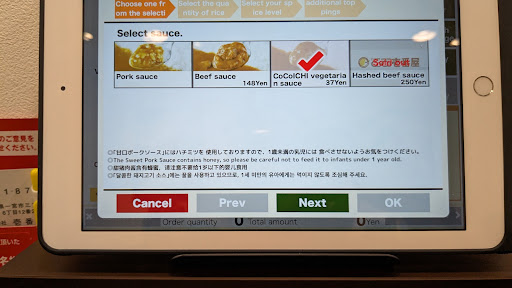 Read moreAte here several times while in Osaka. There several vegetarian options and that includes the curry sauce. The vegetarian options I've tried are the scrambled eggs, mushroom and eggplant. The only one I didn't try was the spinach. You can even add toppings such as extra eggs or eggplant.