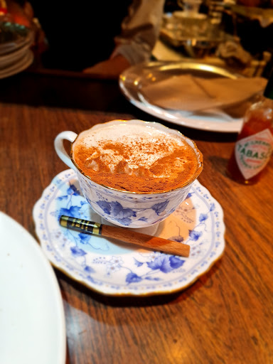 The ambiance is steeped in vintage charm, with warm wood paneling, softly glowing lamps, and jazz or classical tunes playing faintly in the background. The décor exudes nostalgia, and the attention to detail—right down to the porcelain cups—creates an atmosphere of elegance and comfort. It’s easy to imagine writers or artists from another era finding inspiration here.