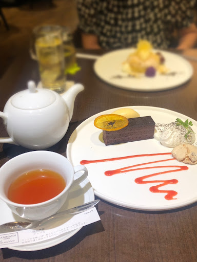 私はティー(アップル)¥1100とチョコレートケーキ/クリームエスプーマを添えて¥1600