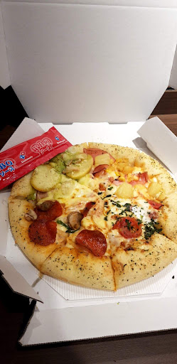 Read moreどうやらここはFC店のようです。 久しぶりに頼んだら未開封を証明するシールが貼られておらず電話をしたら貼るのを止めたとのこと。ここはFC店で直営店ではシールは貼られているとの回答でした。誰かに開封されてもわかりませんよね、と言うと鼻で笑いながら誰も開けませんよっていう始末。。ニュースにもなり大事だった尼崎の店舗で起こったことは他人事ですね。。飲食店の従業員とは思えません。箱を開封すると中のピザは寄れているし、いつ頼んでもここのお店の生地は他のドミノ・ピザと比べてパサパサ感がすごいです。FC店と聞いて納得です。シールを貼るのを止めたことからも分かるように直営店とは違うオペレーションをしているのでしょうか。他の方が書いているように配達員はボソボソはなし何を言ってるのか分からないことが多いです。細々とお金をとる施策をやるくせに料理の味も接客も到底満足できるものではありません。 ファストフード店なので接客のレベルが低いのはいいですがシールをやめたことは致命的です、店員の不適切な対応がニュースにもなっているのに教育をする気がないのでしょうね、、私はここのお店ではもう食べません。