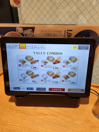 As a chain you'll get what you pay for. It's worth the queue if you want to wait. The ordering is done from your table via a tablet. It's easily switched into different languages so don't panic. There are pictures to help you order. The serving sizes are massive so I have no idea how big the x1.5 and x2 sizes are like. Yes Raman is mostly broth but this was so tasty. Once done your walk up to the till by the door with your bill and scan it and pay, all self service here. Really liked it, friendly helpful staff...