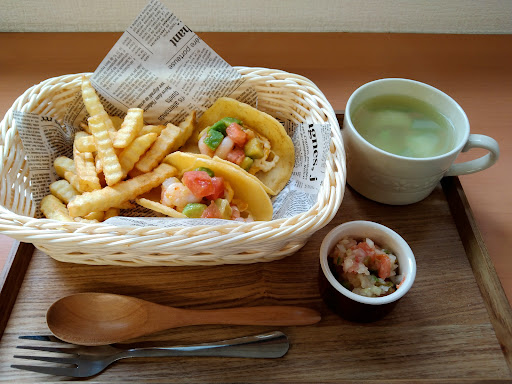 This is a hidden gem. I had a Tacos Set which included 2 kinds of tacos, fries and a soup (or drink). It costs only 600 yen! I asked for two pieces of Prawns and Avocado Tacos as I don't eat meat, (everything else seemed to be meaty) and they were happy to make it for me. The tacos were nice and crispy, the fries were fresh and the soup was warm and homey. The staff was friendly as well. If you visit the onsen which is located just around the corner, you might also like to...