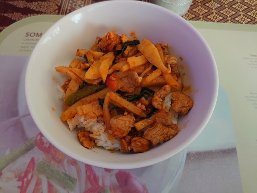 All menu items available for lunch! My favorite Thai dish is Nam Tok Neua/Nam Tok Moo (“waterfall” beef or pork salad). Many Thai restaurants in Japan serve this but only for dinner. It is difficult to find a place that will serve it for lunch. But here you can order anything on their dinner menu even during lunch! They can make this dish with either beef (neua) or pork (moo) too. Both are good. If you like it spicy just tell them and they will make it (very) spicy for you. They have a limited lunch menu with daily specials. Their full menu is quite large and has many items that not often featured in other Thai restaurants. The dining room is spacious for Japan and has a family restaurant feel. If you’re looking for Thai food in this area give this...