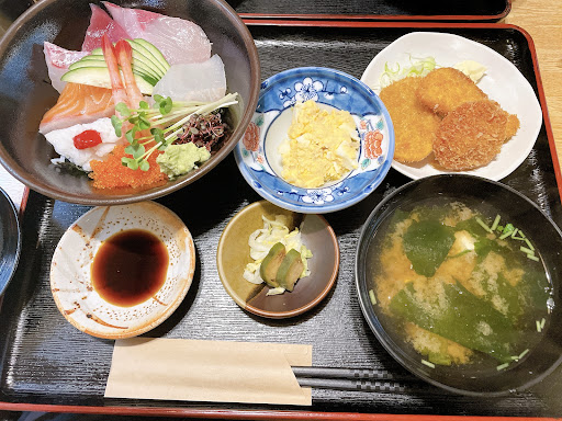 Read more先日初めてランチでお伺いしました! 990円で海鮮丼と揚げ物(ハムカツ、白身魚、カボチャ)、たまごサラダ、お味噌汁、お漬物どれも一品一品とても美味しかったです! 接客も良かったですよ♪ メニューは日により少し変わるみたいなので近々またお伺いするのが楽しみです!