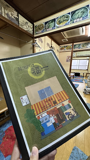 Read moreテレビで、福一のチヂミ、鮑粥を放送していました。 鮑粥は、アンミカさんがケイタイの、待ち受けにしている程、大好きとの事。 放送後は、混むと思い、一段落くして、行きました。 コース料理をいただきました。 コース料理が、お🉐です。 ☆豚バラ(サムギョプサル) 野菜と一緒にいただくので、さ っぱりしています。 ☆チャプチェ モッチリしていて、味付けも良 ☆チヂミ 具沢山で外は、カリカリです。 普通のチヂミとは、違います。 ☆イカフェー 活ダコが八月迄、今は生イカ 大根、胡瓜、梨、生イカをキム チで、味付け。 ☆サムゲタン(参鶏湯) 鶏肉も柔らかく、優しい味付け ☆鮑粥 アワビの身と肝だけで味付け 生米から炊いているので、美味 しさが、一段と増します。 今迄に、味わった事のない、味 です。 是非一度、食べて見て下さい😊 以上が、コース料理で4人分 一人¥3300円です。 ☆別にカンシャンゲシャンを注文 生ワタリガニを醤油に漬け込ん で、三日以上熟成させます。 生臭ささはなく、甘味があり美 味しくいただきました。 ♥カンシャンゲシャンは、予約が...
